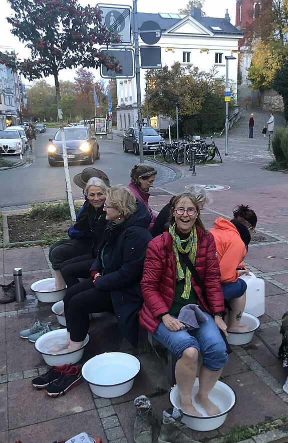 Das Kompen (=Fußbaden) ist eine alte Tradition, die es in vielen europäischen Kurstädten und auch in Japan (Ashiyu) gibt. Es regt die Blutzirkulation in den Füßen an und sorgt noch lange danach für anhaltend warme Füße. Das Angebot steht in der Reihe unserer Bemühungen, das Thermalwasser in Aachen und Burtscheid niederschwellig erlebbar zu machen.