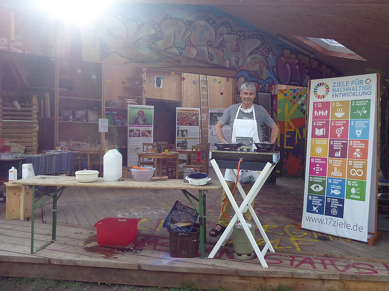 Themen wie Lebensmittelwertschätzung, Klimaschutz durch Ernährung, Ernährungssouveränität und praktisches Ausprobieren stehen dabei im Mittelpunkt. Ob Workshop, Smoothie-Bike, Quiz oder Fermentier-Station – unsere Angebote sind so vielfältig wie die Menschen, die wir erreichen möchten.