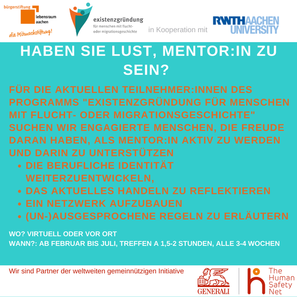 Auf diesem Wege möchten wir Ihr Interesse wecken und dazu einladen, sich als Mentor:in einzubringen. Gerne darf unsere Mail auch in weiteren Netzwerken geteilt werden.
