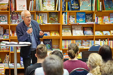 Dank an Denis Adami, von dem die Initiative ausging und der die Schüler:innen für das Vorhaben gewonnen hat, Dank an die Friedrich-Ebert-Stiftung, die den Poetry Slam-Workshop finanziert hat, Dank an Florian Cieslik, der den Workshop professionell geleitet hat, Dank an Gesine Müllen, die die Schüler:innen bei der Illustration der Texte künstlerisch angeleitet und für das Layout gesorgt hat, Dank an den Schulleiter, der unterstützt und ermöglicht hat, das Projekt in der Schule durchführen zu können, Dank an Walter Vennen, der ganz spontan seine Buchhandlung Schmetz am Münsterplatz für diesen Abend zur Verfügung stellte – und ganz besonderer Dank an die Schüler:innen, die durch ihre Musik- und vor allem durch ihre Wortbeiträge bei den Zuhörer:innen einen tiefen Eindruck hinterlassen haben. Sie haben ihnen einen Einblick in ihre ganz persönlichen Ansichten und Meinungen ermöglicht, was großen Respekt verdient.